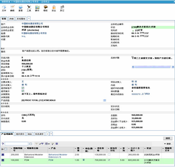 具體來講,企業(yè)的銷售人員通過VamCRM定義的銷售管道實現(xiàn)對銷售工作的流程化跟進(jìn)和管理;玖鞒淌牵菏紫蠕N售人員通過各種途徑獲得客戶信息,與之溝通聯(lián)系,有業(yè)務(wù)進(jìn)一步發(fā)展的可能后形成相應(yīng)的銷售線索,便開始切入銷售管道。然后,通過相關(guān)業(yè)務(wù)活動與客戶進(jìn)行接觸,支持業(yè)務(wù)的不斷發(fā)展,隨后,形成業(yè)務(wù)機(jī)會。若該項業(yè)務(wù)進(jìn)入實質(zhì)性的需求分析及合同的前期談判階段,即升級為系統(tǒng)的報價階段,可以對客戶的需求進(jìn)行報價、出具解決方案。接著,開展一系列商務(wù)公關(guān)活動,以雙方都可接受的實現(xiàn)方式簽訂合同,即在系統(tǒng)里形成銷售訂單。最終促進(jìn)形成發(fā)貨單,進(jìn)入實施、合同執(zhí)行、收款等相關(guān)后續(xù)的環(huán)節(jié)。與此同時,所有與現(xiàn)實中同客戶合約相關(guān)的信息都可以以統(tǒng)一的形式在系統(tǒng)中存儲,并且可以在獨立銷售階段間輕松遞進(jìn)轉(zhuǎn)換,有效提高系統(tǒng)的易用性和信息統(tǒng)一的關(guān)聯(lián)程度。每一個銷售階段都隱含著不同的側(cè)重目標(biāo),從線索挖掘、銷售過程追蹤、直至交易達(dá)成,企業(yè)可以對銷售過程進(jìn)行全面過程化管理,并且各個流程之間信息高度關(guān)聯(lián)和集成統(tǒng)一。同時,VamCRM融合了經(jīng)眾多企業(yè)多年實踐證明非常有效的MEDDIC銷售方法,不但能夠使銷售流程更加順暢,更能夠幫助企業(yè)深度把握客戶需求,掌握客戶購買習(xí)慣,明顯提升銷售業(yè)績。