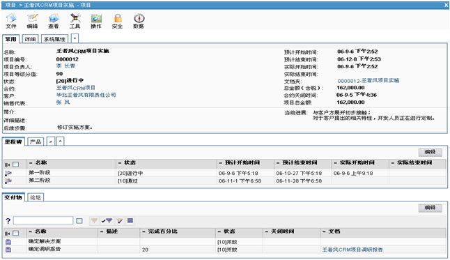 VamCRM提供專業(yè)的項目管理模塊,支持項目范圍管理、時間管理、資源管理、質(zhì)量管理、成本管理。支持以銷售合約為驅(qū)動、過程清晰、全程受控的項目管理方式為客戶交付產(chǎn)品和服務(wù)。VamCRM融入成熟的項目管理方法和成功的實踐經(jīng)驗,從整體上對項目進(jìn)行規(guī)劃、組織、執(zhí)行、控制,使企業(yè)可以更加優(yōu)質(zhì)地為客戶提供長期的服務(wù)。項目創(chuàng)建后,VamCRM系統(tǒng)會自動生成一個與當(dāng)前項目相匹配的文件夾,為項目執(zhí)行過程中產(chǎn)生的交付物或項目的有關(guān)文檔提供統(tǒng)一的存檔位置;項目全程融合項目管理的方法,分里程碑管理項目活動和交付物,實時統(tǒng)計項目的關(guān)鍵數(shù)據(jù),并且里程碑及所屬活動和交付物等都可分狀態(tài)量化標(biāo)識,對項目進(jìn)展做到實時監(jiān)控,避免了在項目實施中的“救火”行動和盲目發(fā)展。也可自動關(guān)聯(lián)記錄并統(tǒng)計所有項目進(jìn)展過程中發(fā)生的預(yù)算與費用,實現(xiàn)項目費用清晰可控。伴隨著項目的進(jìn)程,可以記錄所有在項目執(zhí)行過程中相關(guān)的聯(lián)系人、文檔、備忘錄等數(shù)據(jù),形成完整的項目內(nèi)容集合。項目中還包括基于項目的論壇,供項目組成員就項目的相關(guān)問題進(jìn)行在線交流,同時,項目管理全程與企業(yè)高效協(xié)同的業(yè)務(wù)流程無縫集成,能夠使企業(yè)的相關(guān)部門以項目為導(dǎo)向,集中所有資源高效協(xié)同服務(wù),大大降低項目執(zhí)行風(fēng)險。