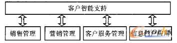 (5)客戶智能支持?蛻糁悄苤С痔幱谙到y(tǒng)功能平臺(tái)的核心地位,若把圖2中的5個(gè)模塊比作是人體的不同功能器官,客戶智能支持就相當(dāng)于人的“大腦”。雖然CRM應(yīng)用系統(tǒng)中其他模塊也具各一定的數(shù)據(jù)統(tǒng)計(jì)分析能力,但它們的主要功能定位在業(yè)務(wù)操作和客戶協(xié)作層面,客戶智能支持模塊則是完整的、以輔助決策為設(shè)計(jì)目標(biāo)的分析型應(yīng)用,其基礎(chǔ)數(shù)據(jù)來自于各CRM業(yè)務(wù)流程運(yùn)行產(chǎn)生的大量數(shù)據(jù)及企業(yè)其他應(yīng)用系統(tǒng)數(shù)據(jù)。