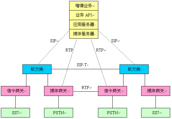 軟交換的核心競爭力主要在軟件方面,它即可以作為獨(dú)立的NGN網(wǎng)絡(luò)部件,分布在網(wǎng)絡(luò)的各處,為所有媒體提供基本業(yè)務(wù)和補(bǔ)充業(yè)務(wù),也可以與其它的增強(qiáng)業(yè)務(wù)節(jié)點(diǎn)結(jié)合,形成新的產(chǎn)品形態(tài)。正是軟交換的靈活性,使得它可以應(yīng)用在各個(gè)領(lǐng)域。