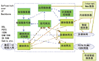 E1、DSL、Ethernet到無線接入技術(shù)GSM/GPRS、PHS、W-CDMA以至未來的接入技術(shù);支持與各種傳統(tǒng)電信業(yè)務(wù)網(wǎng)絡(luò)如PSTN和PLMN網(wǎng)絡(luò)以信令網(wǎng)節(jié)點(diǎn)方式互聯(lián),支持與IP業(yè)務(wù)網(wǎng)絡(luò)(如VoIP)和多媒體通信網(wǎng)絡(luò)(如Internet)互聯(lián);與接入網(wǎng)絡(luò)的信令和傳統(tǒng)業(yè)務(wù)網(wǎng)絡(luò)的信令(SS7)無縫互聯(lián);支持話音、遠(yuǎn)程會議、多媒體通信等基于會話的通信業(yè)務(wù);