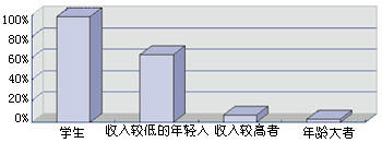 消費(fèi)者根據(jù)文化程度和職業(yè)的不同,對IP電話的認(rèn)可也不一樣,其中,學(xué)生和年輕的上班族的認(rèn)知率是最高的,這和他們的收入以及較易接受新事物有關(guān)。學(xué)生的收入較低,年輕的上班族中不少人的收入不高,同時(shí)他們也是長途電話的主要使用者之一。對于那些高收入的消費(fèi)者來說,IP電話所節(jié)省的費(fèi)用必要性不大,而很多話費(fèi)可以報(bào)銷,IP電話使用又不方便,因此他們一般不使用IP電話。而對于年齡較大的消費(fèi)者來說,IP電話的不方便使用是最主要的原因之一。圖5是個(gè)人消費(fèi)者對IP電話的使用程度比較。