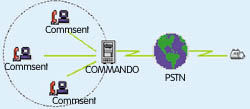 COMMANDO系統(tǒng)提供與其他同類(lèi)系統(tǒng)之間的互連互通功能,通過(guò)選擇不同的模塊可以輕松實(shí)現(xiàn)與CISCO、CLARENT、COMMSENT、WHEREVER等VoIP系統(tǒng)之間的無(wú)縫銜接。