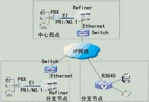 對(duì)于大多數(shù)的企業(yè)用戶,都擁有自己的用戶交換機(jī)PBX。在進(jìn)行IP電話網(wǎng)的建設(shè)中,這些PBX將被保留,繼續(xù)承擔(dān)起用戶接入的功能。而這些PBX之間的中繼連接都將通過IP骨干網(wǎng)來完成。這樣,既可以節(jié)約價(jià)格不菲的長(zhǎng)途中繼租用費(fèi),也避免了大規(guī)模的改造所帶來的浪費(fèi)。