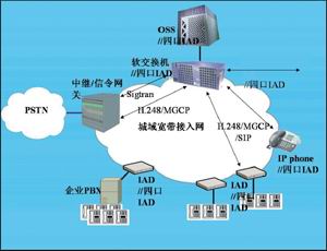 本地軟交換通過中繼/信令網關與PSTN互通,用戶接入終端形式通常有IAD(集成接入設備)和IP phone。IAD提供普通電話POTS接口,容量從單門到幾百門。IAD根據容量可以放置在用戶室內、樓道或專用機房里。IP