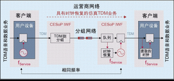 圖1:通過(guò)分組交換網(wǎng)絡(luò)實(shí)現(xiàn)的電路仿真業(yè)務(wù)。