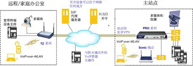 SonicWALL利用其分布式無線解決方案將完全的VoIP安全性擴(kuò)展到附屬的無線網(wǎng)絡(luò)。無論是利用內(nèi)置802.11無線功能的TZ 170系列,還是配合使用PRO系列設(shè)備和SonicPoint