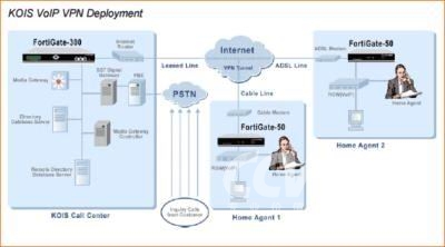KOIS利用FortiGate網(wǎng)絡安全網(wǎng)關在保持所需要的性能級別和系統(tǒng)需求的基礎上全面保護了VPN的數(shù)據(jù)網(wǎng)絡。FortiGate-300網(wǎng)絡安全網(wǎng)關安全在呼叫中心,F(xiàn)ortiGate-50安裝在每個家庭代理中。