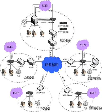 北京正有公司為企業(yè)專門設(shè)計了一套interPBX解決方案,利用企業(yè)自有的數(shù)據(jù)網(wǎng)構(gòu)建覆蓋整個企業(yè)的VPTN網(wǎng)絡(luò)電話系統(tǒng),該套系統(tǒng)具備與傳統(tǒng)PSTN電話網(wǎng)絡(luò)實現(xiàn)無縫連接的能力,在不影響工作效率的前提下達到降低通話費用的目的,同時可以完成企業(yè)所需要的其它增值服務(wù)功能,如電話會議、呼叫中心等。