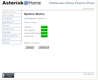 web GUI也被認(rèn)為是Asterisk管理入口(Asterisk Management Portal,AMP),使用它可允許你讀取和編輯數(shù)據(jù)庫,查看報告,更改設(shè)置等(圖3)。