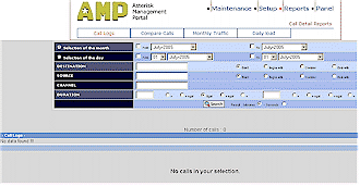 在圖6所示的系統(tǒng)狀態(tài)頁面中,大家可看到有“”Reboot和“Shutdown”按鈕排列在下部,在你運行AAH的機器離控制計算機很遠的時候這個功能很管用。報告標(biāo)簽(圖7)看上去非常簡單,只有四個類別:呼叫記錄、比較記錄、月流量和日負荷,在這些報告中有些內(nèi)容顯示不全,但系統(tǒng)又不讓你來調(diào)整數(shù)據(jù)的寬度范圍。