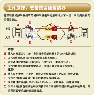 典型的人類語音盡管由范圍很寬的頻率組成,但利用10KHz以上的頻率采樣就能很好地復制。不幸的是,大多數(shù)VoIP的編解碼器也只能捕獲這個頻譜范圍的一半。G.729語音編解碼器是VoIP系統(tǒng)中應用最廣的編解碼器,它是采樣頻率范圍從200Hz至略小于4KHz的窄頻編解碼器。因此,典型人類語音的大部分頻譜沒有被采集到。