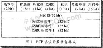 RTP數(shù)據(jù)包由12個字節(jié)的固定RTP頭和不定長的連續(xù)媒體數(shù)據(jù)(視頻幀或音頻幀)組成。RTP協(xié)議的數(shù)據(jù)包格式如圖1所示。