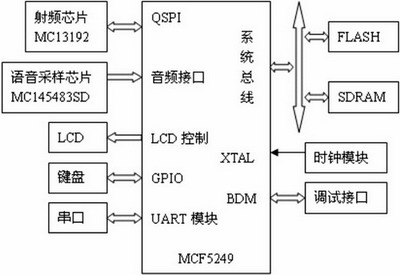 除內核外,完整的操作系統還需要編寫鍵盤,LCD,音頻驅動和射頻芯片驅動。音頻驅動采用Phlips I2S數據格式,設定采樣率為8KHz。射頻芯片驅動采用Freescale公司為MC13192提供的配套軟件模塊。