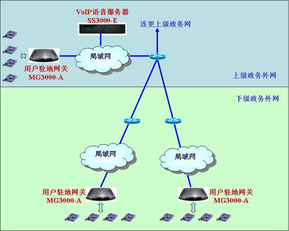 在電子政務(wù)網(wǎng)建設(shè)完成后,政府各級(jí)部門(mén)可以在其上建設(shè)自己的VoIP系統(tǒng),以實(shí)現(xiàn)轄區(qū)范圍內(nèi)“虛擬電話(huà)專(zhuān)網(wǎng)”的效果。在這個(gè)電話(huà)專(zhuān)網(wǎng)內(nèi),所有內(nèi)部電話(huà)都有自己設(shè)置的小號(hào),他們之間通話(huà)都將免費(fèi),而不管這些電話(huà)間物理距離是多少。