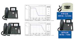 在頻譜分析圖表中,我們很容易看到HD-Sound具備較大的傳輸頻譜范圍。HD-Sound的傳輸頻譜包括比窄帶電話傳輸頻譜更低和更高的音調,使寬帶通話者能夠獲得非常出色的用戶體驗。