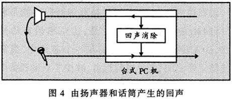 ——在IP電話的應(yīng)用中,人們?nèi)羰褂脫P(yáng)聲器和麥克風(fēng)就可能出現(xiàn)回聲現(xiàn)象。如圖4所示。