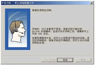 當(dāng)你15分鐘的訓(xùn)練全部結(jié)束后,將會(huì)看到如圖12所示的對(duì)話框,此時(shí)原來默認(rèn)的用戶配置文件將用剛才所收集的訓(xùn)練數(shù)據(jù)進(jìn)行更新,稍候片刻,你就會(huì)看到如圖13所示的對(duì)話框,告訴你語(yǔ)音訓(xùn)練已經(jīng)結(jié)束。