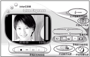 動態(tài)視頻EMAIL,用這個軟件可以采用發(fā)送電子郵件的方式,將您的音容笑貌傳送到親朋好友的郵箱中,讓遠方的她收到可“動”的你。我們還是以奧美嘉公司的CD370電腦相機為例向大家介紹這個功能。在CD370附帶的驅(qū)動光盤中就搭載了視頻EMAIL的制作軟件,其實它是Intercom的Live Express視頻應用軟件,除了視頻EMAIL(郵件玩家)的功能外,它還具有“卡片玩家”及“相薄玩家”等功能,我們將在以后的文章中為大家逐一介紹。首先,打開Live Express的主程序“影音玩家”,可以見到程序界面上分布著大大小小不同的按鈕,是不是一時間找不到感覺了?不用著急,下面請跟著我的步驟來操作: