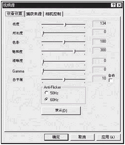 4.選擇視頻源。在這里你可以選擇你錄制時要采用的視頻設(shè)備,然后對視頻設(shè)備的亮度、對比度等進行有效地調(diào)整。