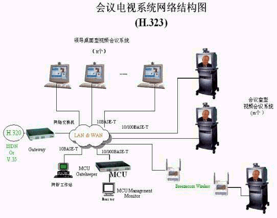 因此,對于會議電視系統的建設,我們推薦采用H.323方案。方案的總體結構如下: