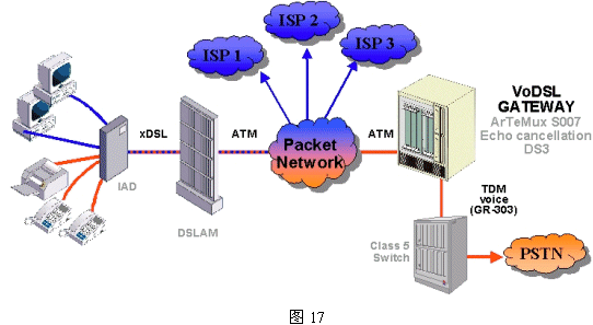 NMS提供整套ATM解決方案,下圖17給出了一個Voice Over ATM/xDSL的應用方案。
