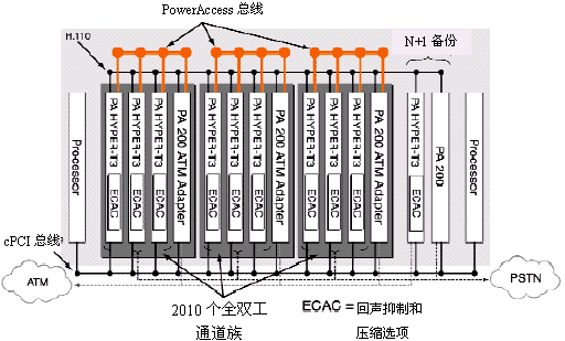 為了解決CompactPCI的這一限制,NMS開發(fā)出了PowerAccess體系結(jié)構(gòu),它借助現(xiàn)有的CompactPCI標(biāo)準(zhǔn),同時把它的通道容量擴展到2048之上。這種體系結(jié)構(gòu)以PowerAccess總線為特色,PowerAccess總線是一個輔助的4096個TDM時隙,支持現(xiàn)存的CompactPCI H.110總線。由于提供語音通道的增多,從而可以提高系統(tǒng)的密度。