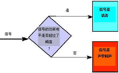 符合ITU G.168(2000)標(biāo)準(zhǔn)的回聲消除器能夠消除電氣(混合)回聲。這類設(shè)備在其運行當(dāng)中采用了"兩段式"方法。在第1階段,使用線性卷積處理消除了大部分回聲。在第2階段,采用了非線性處理器(NLP)以消除殘存的回聲,這一部分相對較小。對殘存回聲信號的辨識是一件很簡單的任務(wù),這是因為它的功率電平明顯低于原始的語音信號。