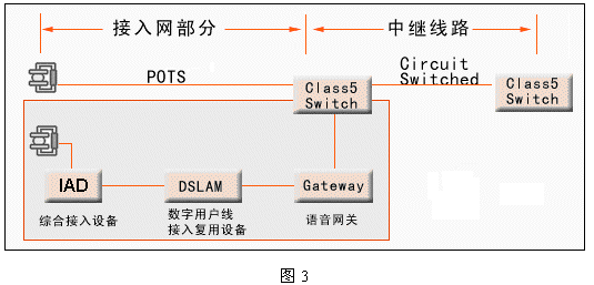 (1)綜合接入設(shè)備(IAD:Integrated Access Device):安裝在用戶端的復(fù)用解復(fù)用設(shè)備,其功能是把模擬話音(多路)和數(shù)據(jù)信息流復(fù)用在一個電話線路上傳送。