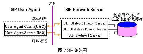 SIP包含兩個基本組件:SIP用戶代理(SIP user agent)和SIP網(wǎng)絡服務器(SIP network server)。SIP通信將在這兩種組件進行。如下圖7所示: