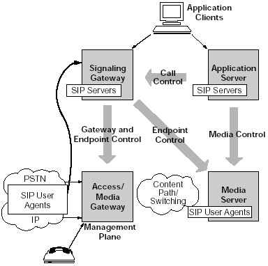 許多語音服務(wù)都是由媒體服務(wù)器提供的。例如,一個客戶給某個電子商務(wù)網(wǎng)站打電話會被接到一個自動語音應(yīng)答(IVR)上或者自動總機(jī)上。這些應(yīng)用使用了語音,語音識別和音頻等功能,都是運(yùn)行在媒體服務(wù)器上的。在下一代網(wǎng)絡(luò)的實現(xiàn)中,媒體服務(wù)器就象是另一個電話(或者說,一個SIP的終端)。因此,他們可以享受和用戶一樣的SIP的優(yōu)點(diǎn)。