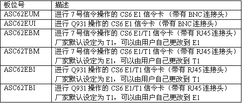 注意(Note):ASC62EBM和ASC62TBM的唯一不同之處就是E1/T1接口選擇模塊的缺省設置值不同。在兩種型號的板卡中,用戶都可以通過移動模塊來選擇是進行E1操作還是進行T1操作。