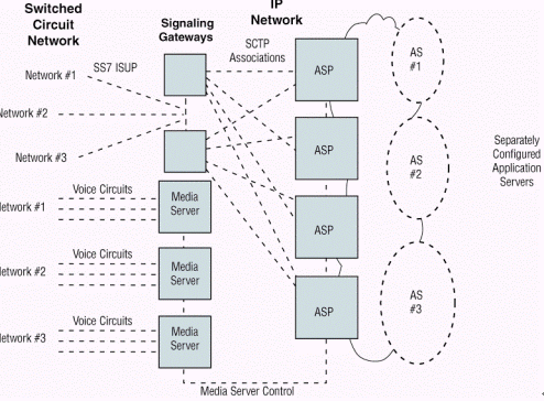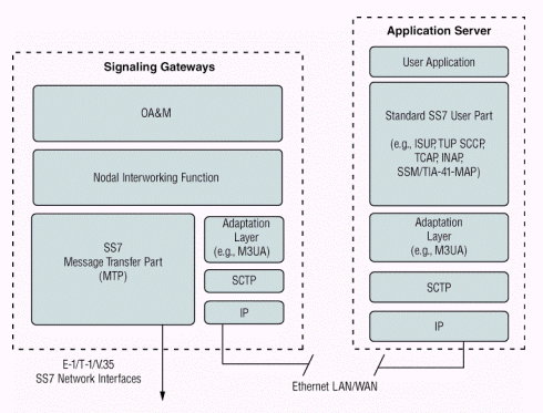 SCTP和應(yīng)用層軟件,如MTP3用戶(hù)適配層 (M3UA),以及標(biāo)準(zhǔn)的七號(hào)信令用戶(hù)端軟件,如ISUP、移動(dòng)應(yīng)用部分 (MAP)、或者智能網(wǎng)應(yīng)用部分