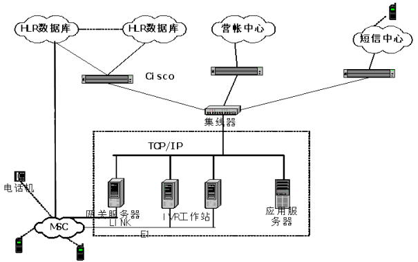 。。如圖所示,Miscall平臺主要包括三個部分:信令網(wǎng)關(guān)服務(wù)器、IVR工作站及應(yīng)用服務(wù)器。
