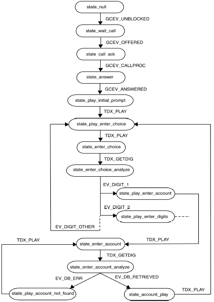 IVR參考程序(SimpleIvr)為想用R4和包括軟件開發(fā)包(SDK)的Global Call APIs 建立應(yīng)用程序的Dialogic用戶提供了演示代碼。該應(yīng)用程序用C++開發(fā),使用面向?qū)ο蟮姆椒ㄔ试S增加新的組件及對已有組件的重用。SimpleIvr應(yīng)用程序設(shè)計為單線程、異步,符合必要的性能需求,并使用了一些特殊的技術(shù),比如線程池,來處理長時間的運轉(zhuǎn)。
