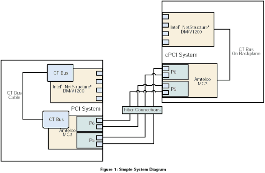 基于Windows操作系統(tǒng)的Dialogic® 系統(tǒng)5.1.1發(fā)布版本特征包1軟件允許通過CT總線多個板卡共享資源。然而,Dialogic卻沒有提供跨服務(wù)器共享CT總線的機制,實現(xiàn)這種功能需要一種可以跨服務(wù)器進行CT總線連接。其中一個可行的解決方案是使用Amtelco