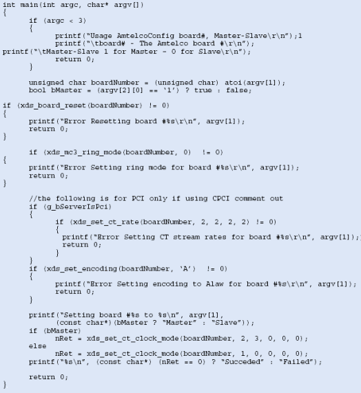 圖10所示為配置Amtelco卡的配置代碼示例,這個應(yīng)用需要在每一個服務(wù)器上運行。