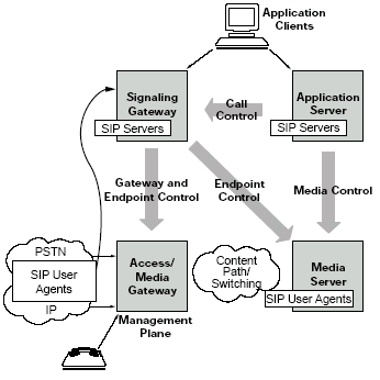 許多語(yǔ)音服務(wù)都是由媒體服務(wù)器提供的。例如,一個(gè)客戶給某個(gè)電子商務(wù)網(wǎng)站打電話會(huì)被接到一個(gè)自動(dòng)語(yǔ)音應(yīng)答(IVR)上或者自動(dòng)總機(jī)上。這些應(yīng)用使用了語(yǔ)音,語(yǔ)音識(shí)別和音頻等功能,都是運(yùn)行在媒體服務(wù)器上的。在下一代網(wǎng)絡(luò)的實(shí)現(xiàn)中,媒體服務(wù)器就象是另一個(gè)電話(或者說(shuō),一個(gè)SIP的終端)。因此,他們可以享受和用戶一樣的SIP的優(yōu)點(diǎn)。