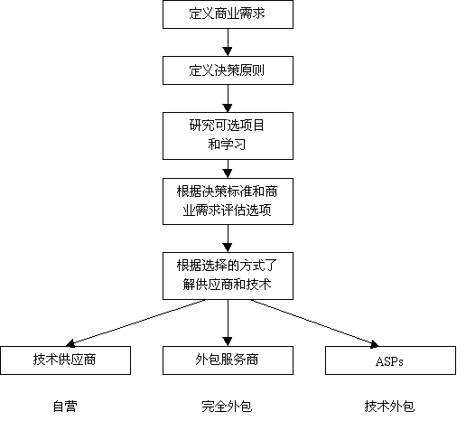 在確定規(guī)模和電子商務(wù)的影響之前,應(yīng)該先花費(fèi)些時(shí)間分析一下環(huán)境條件。圖2提供了一個(gè)框架結(jié)構(gòu),可用于確定實(shí)現(xiàn)電子商務(wù)支持最好的方式。記住,這只是確定你希望采取的步驟的第一步,下一步將選擇一個(gè)銷售商或供應(yīng)商。